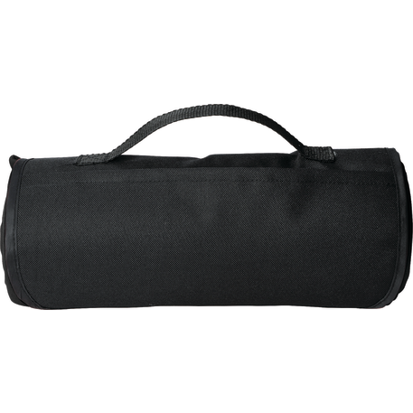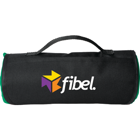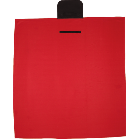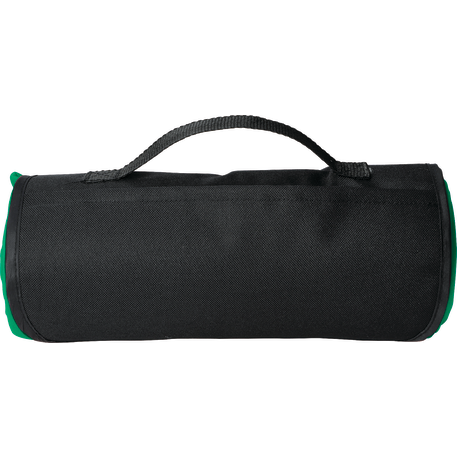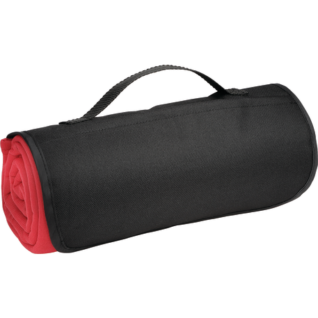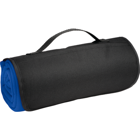 The Roll Up Sweatshirt Blanket includes a front pocket with a hook and loop closure and an easy carry handle. Blanket measures 48" x 53" unfolded and 12.2" x 4.7" folded. This blanket is spot clean only.
