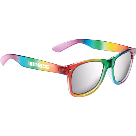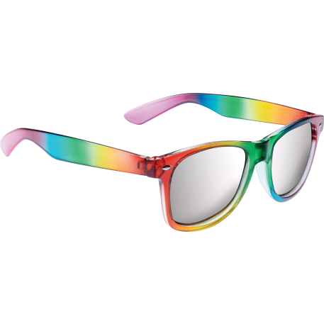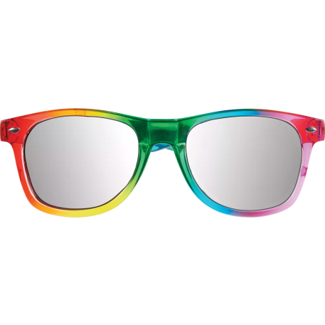 The Rainbow Sun Ray Sunglasses are classic folding eyewear with UV 400 protective lenses. Full color rainbow frame with silver mirrored lenses.