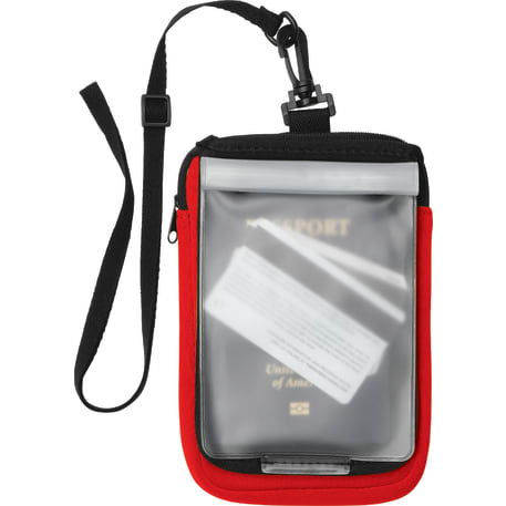 The Sandbar Neoprene Waterproof Pouch is a deluxe personal case with inner PVC pocket that features a triple-secure closure to ensure protection of inner contents. Durable, zippered outer neoprene sleeve provides extra padding & water-resistance. Includes black plastic swivel clip & removable lanyard for easy travel.