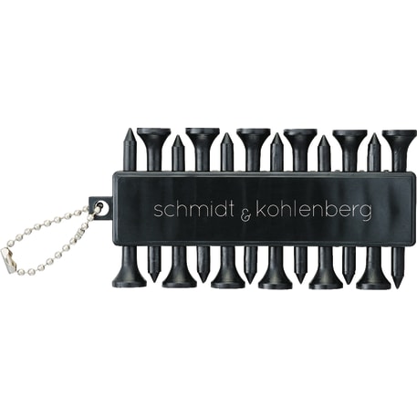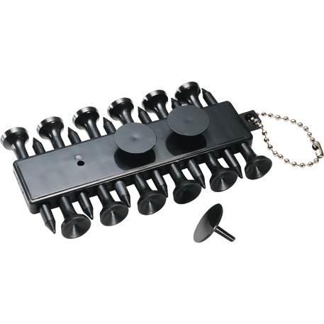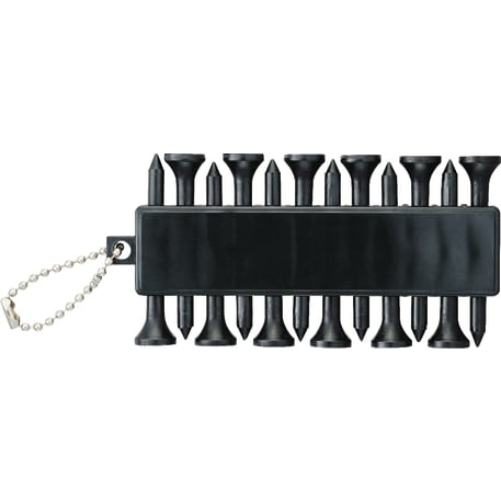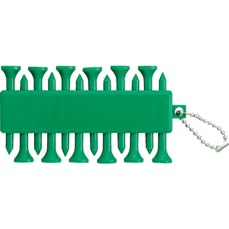 The Golf Buddy features 12 golf ball tees and 3 golf ball markers on a beaded chain.