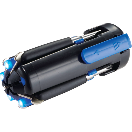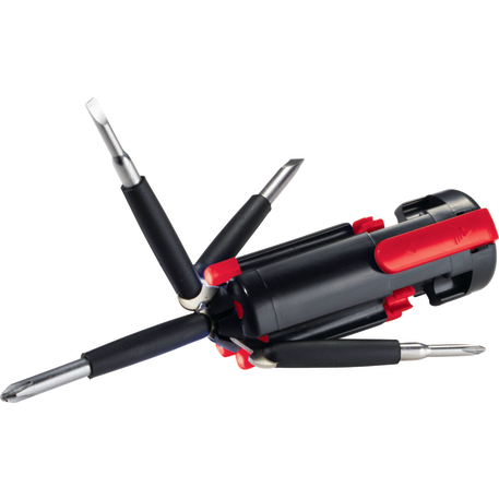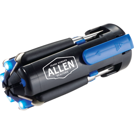 The Penta 6-in-1 Screwdriver Flashlight is a convenient size foldable screwdriver tool with a combination of hex, star head, flat and Philips styles. Also features a four-white LED flashlight with an on/off power switch on the back.