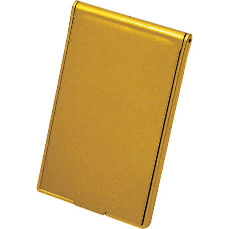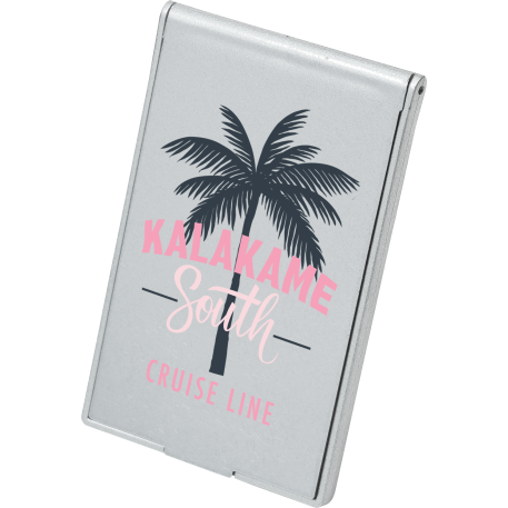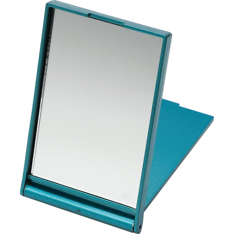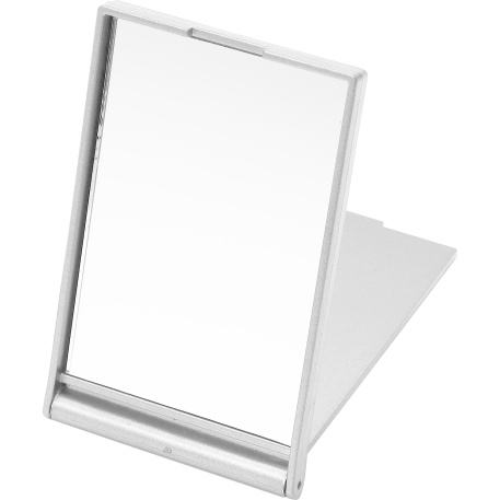 The Stand Up Pocket Mirror has a flip-top cover that converts into a mirror stand.
