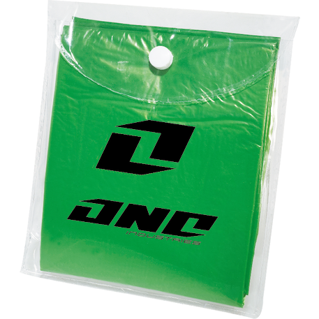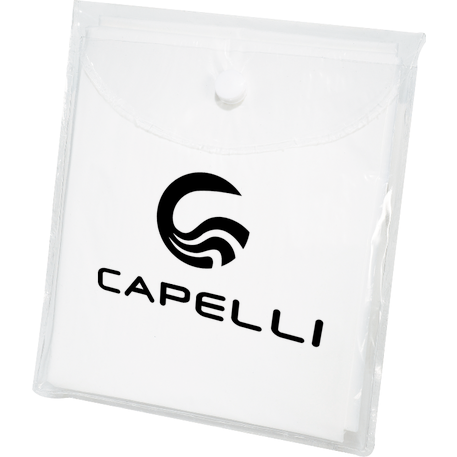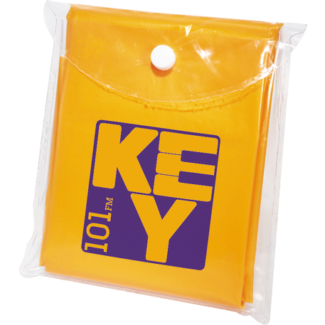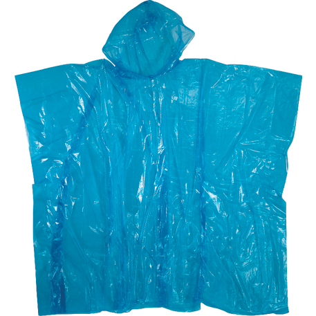 The Rally Disposable Poncho is an adult-size hooded poncho that comes packed in a small and convenient pouch. Poncho Size: 36" L (torso) x 48" W (arms). Pouch Size (Imprinted Item): 5-3/4" H x 5" W.