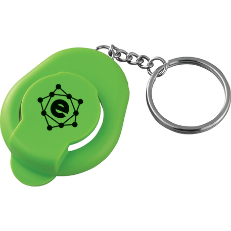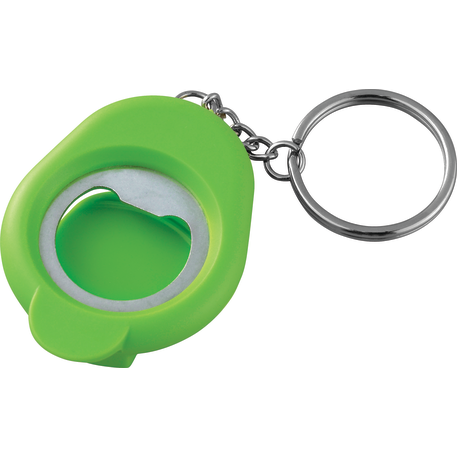 The Hang On Your Pocket Keychain/Bottle Opener can easily open both bottles and flip-top cans. It also includes a metal key ring.