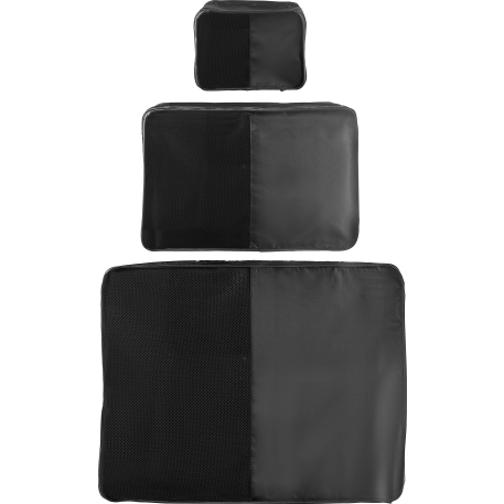 The Packing Cube 3pc set includes 3 different sized packing cubes. Each cube has an additional sleeve that allows piece to be compressed and folded into the pouch. Pouch sizes: Small 8.5"H x 6.5"W x 3.75"D, Medium 16"H x 10.5"W x 4"D, Large 20.5"H x 16"W x 4.25"D. Medium and Large sizes will pack into small size during shipping.