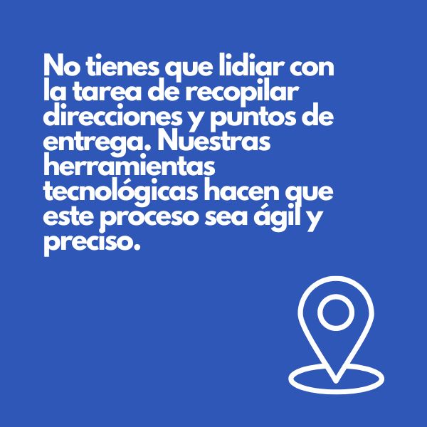 Imagina esto: No tienes que lidiar con la tediosa tarea de recopilar direcciones y puntos de entrega. Nuestras herramientas tecnológicas hacen que este proceso sea ágil y preciso.